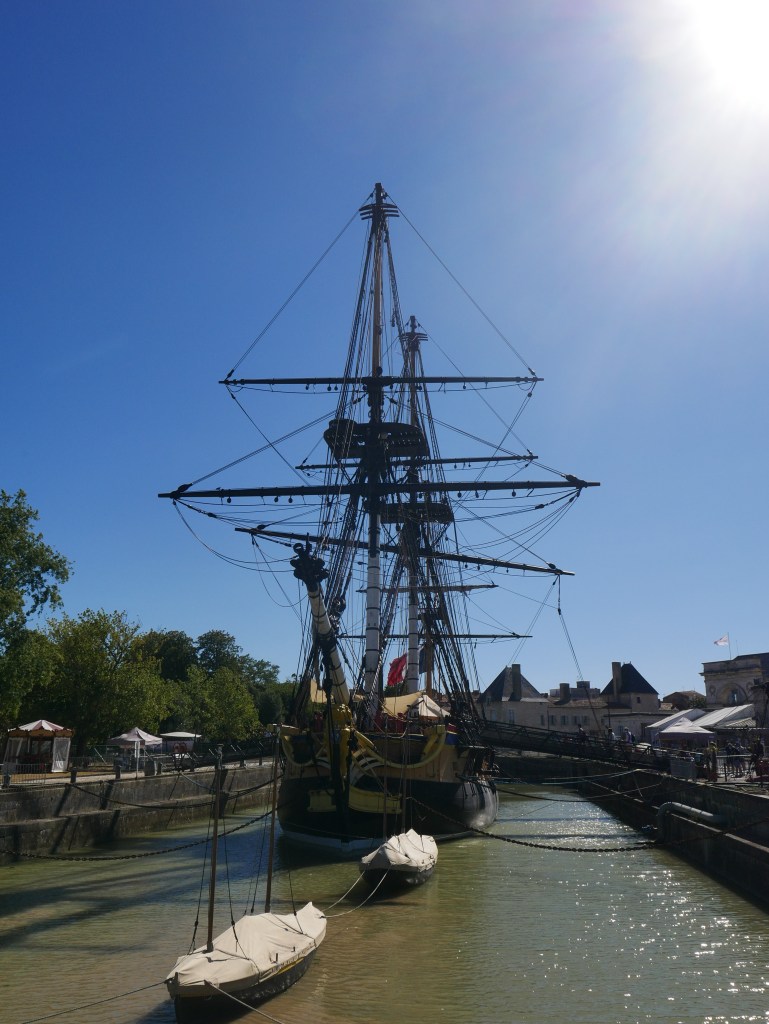 Cela n’en reste pas moins une belle après-midi chargée avec pour commencer la visite de la Frégate L’Hermione. J’avais eu l’occasion de l’apercevoir lors de son escale à Bordeaux, mais les visites étaient prises d’assaut ! Voici donc l’occasion, en plus de fouler le sol du navire, de découvrir au fil d’un joli parcours l’histoire et la vie sur la frégate au XVIII°s vs aujourd’hui, mais aussi les différents métiers qui l’entourent : les cordes, les voiles, le bois etc… C’est passionnant et il y en a pour tous les goûts.