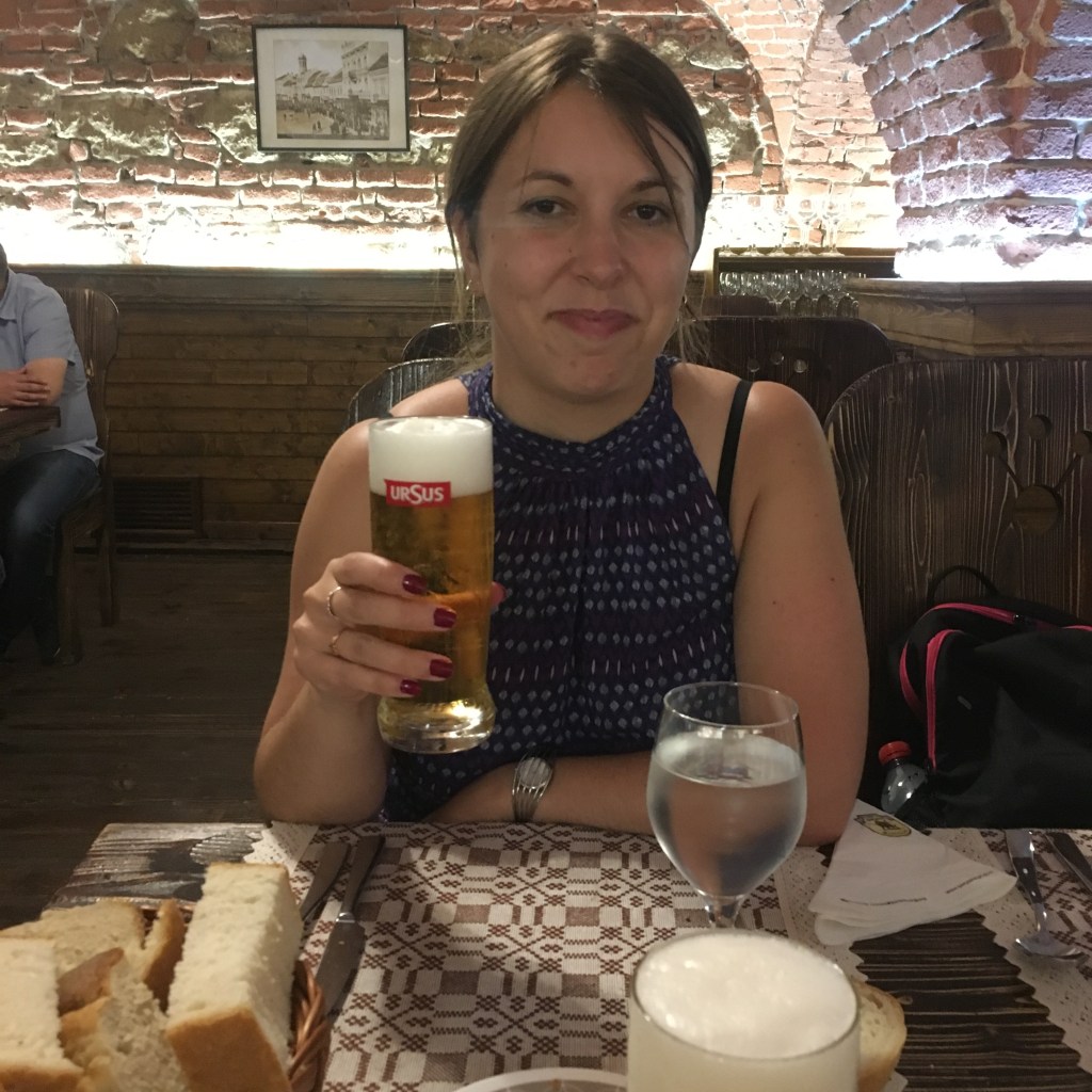 Restaurant Sergiana : un de mes restaurants préférés de notre séjour ! On entre dans ce restaurant et directement on descend en sous-sol, et ces cavités en pierre apparente sont immenses, avec de nombreuses alcôves pour quelques tables, donc on n’est pas les uns sur les autres. Le cadre, le repas (cf photo de l’article), la bière, la ville, j’ai tout aimé à Brașov je crois !
