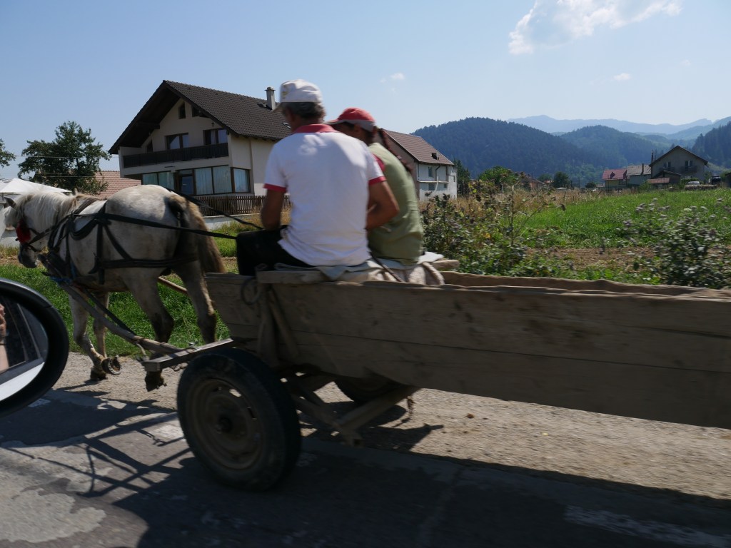 - Attention aux charrettes, chevaux, vélos et piétons avec lesquels les routes sont à partager